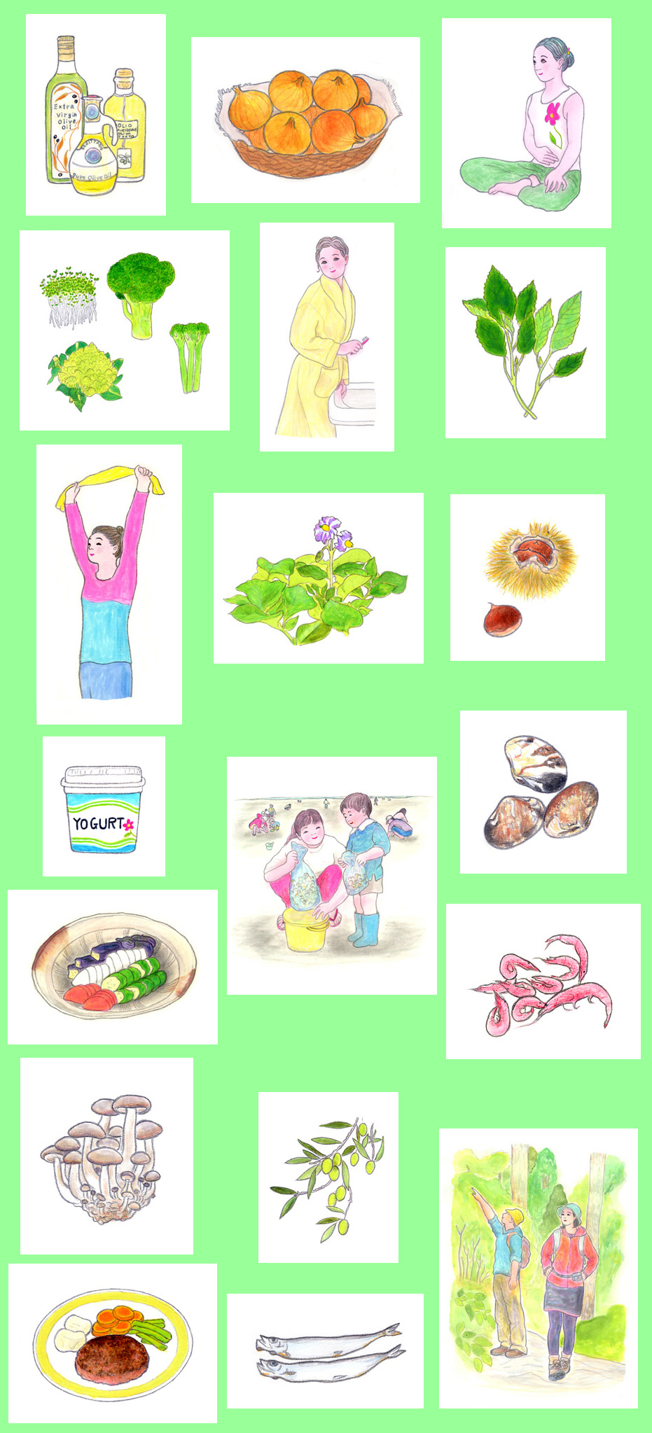 「キッチン・バスケット プラス」ハウス食品ホームページ食材辞典と健康&栄養のイラスト
